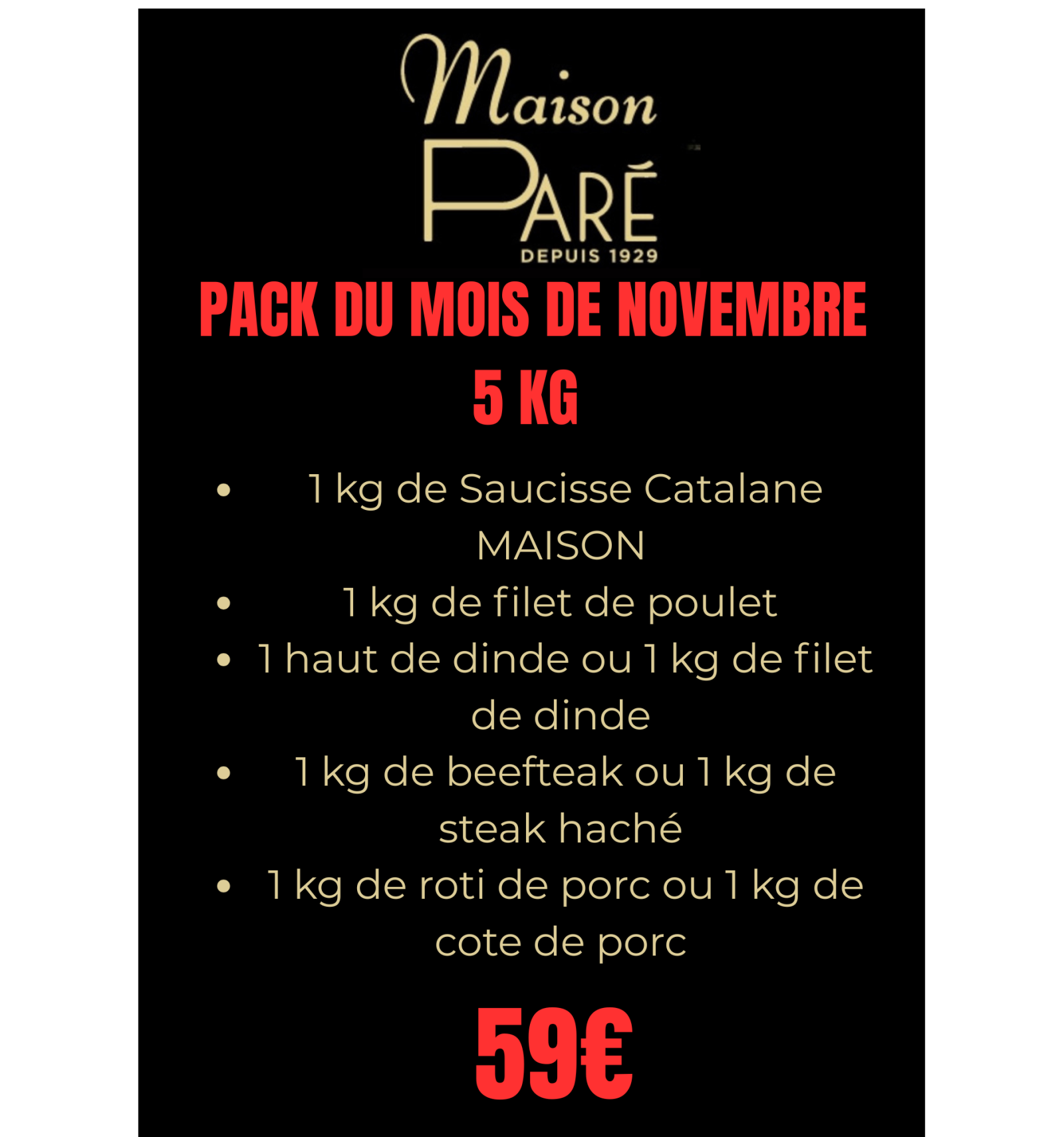 Pack du mois de novembre 5 kg à 59€